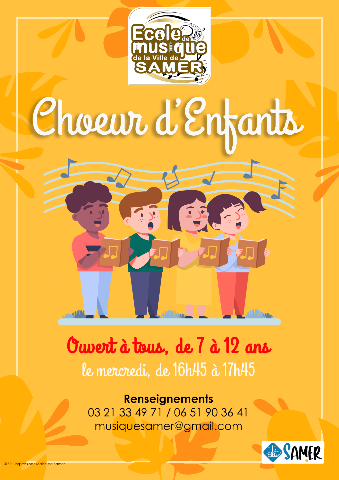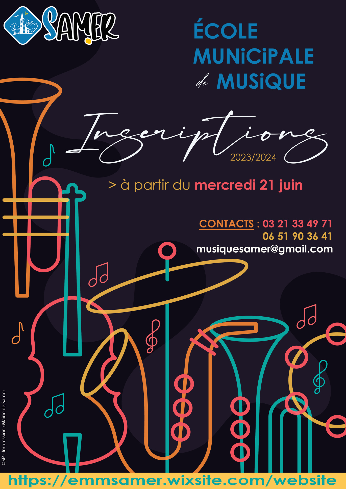veuillez contacter par mail Mr Nicolas CADART à l'adresse suivante : musiquesamer@gmail.com